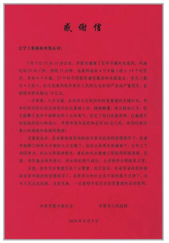作为国有企业,拼搏在线官方网站切实履行自身社会责任,以实际行动践行经营宗旨和企业承诺,积极回馈社会。疫情期间,通过省慈善总会向湖北疫区捐献5台华晨集团生产的负压救护车,总价值106万元;通过省政府采购协会向省慈善总会捐款3万元,助力我省抗疫工作。2019年7月,积极响应省政府及省住建厅号召,为开原市7.3龙卷风受灾受难地区捐款3万元。2008年起,与建昌县石佛乡建立结对帮扶关系,多年来,相继为其修筑过水路面、建设乡村集市、购买学校教学器具、慰问贫困户等,解决当地居民实际困难。