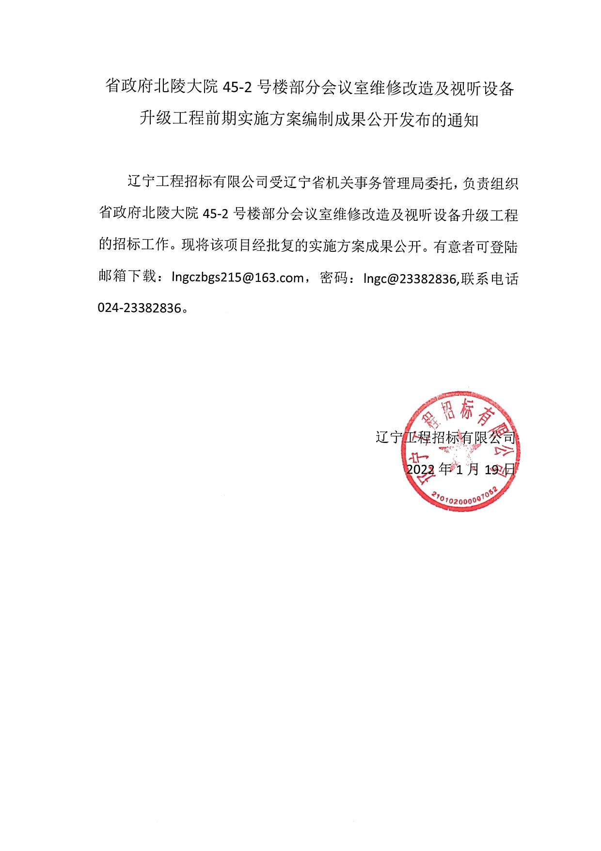 省政府北陵大院45-2号楼部分会议室维修改造及视听设备升级工程前期实施方案编制成果公开发布的通知