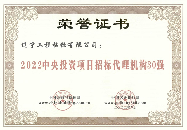 在中国采购与招标网、中国名企排行网举办的“2022 年第 16 届招投标领域年度聚焦” 评选中,我拼搏在线官方网站凭借优秀的资质条件、良好的经营业绩、健全的管理体系、诚信的服务态度获得“2022 中央投资项目招标代理机构30强”荣誉称号。