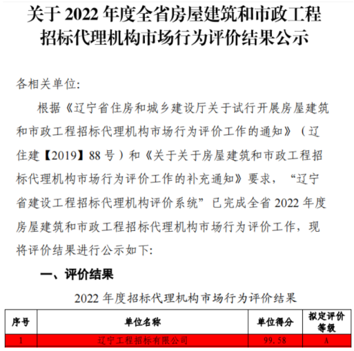 房屋建筑和市政工程招标代理机构市场行为评价是辽宁省住建厅为加强和完善辽宁地区招标代理机构市场行为监管,规范招标代理机构和从业人员执业行为,落实招标代理机构和从业人员主体责任,提高招标代理机构综合素质和业务水平而开展的年度系统工作,对提高招标代理机构综合素质和业务水平具有十分积极的作用。自2019年活动开始举办以来,拼搏在线官方网站通过不断完善内部管理制度,提升人员能力素质,规范采购业务行为,提升全过程价值服务水平,通过合规管控构建企业核心竞争力,得到行政监督、行业协会、项目单位等各方高度评价和良好的市场反馈。