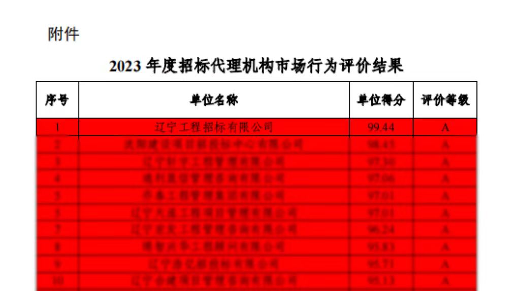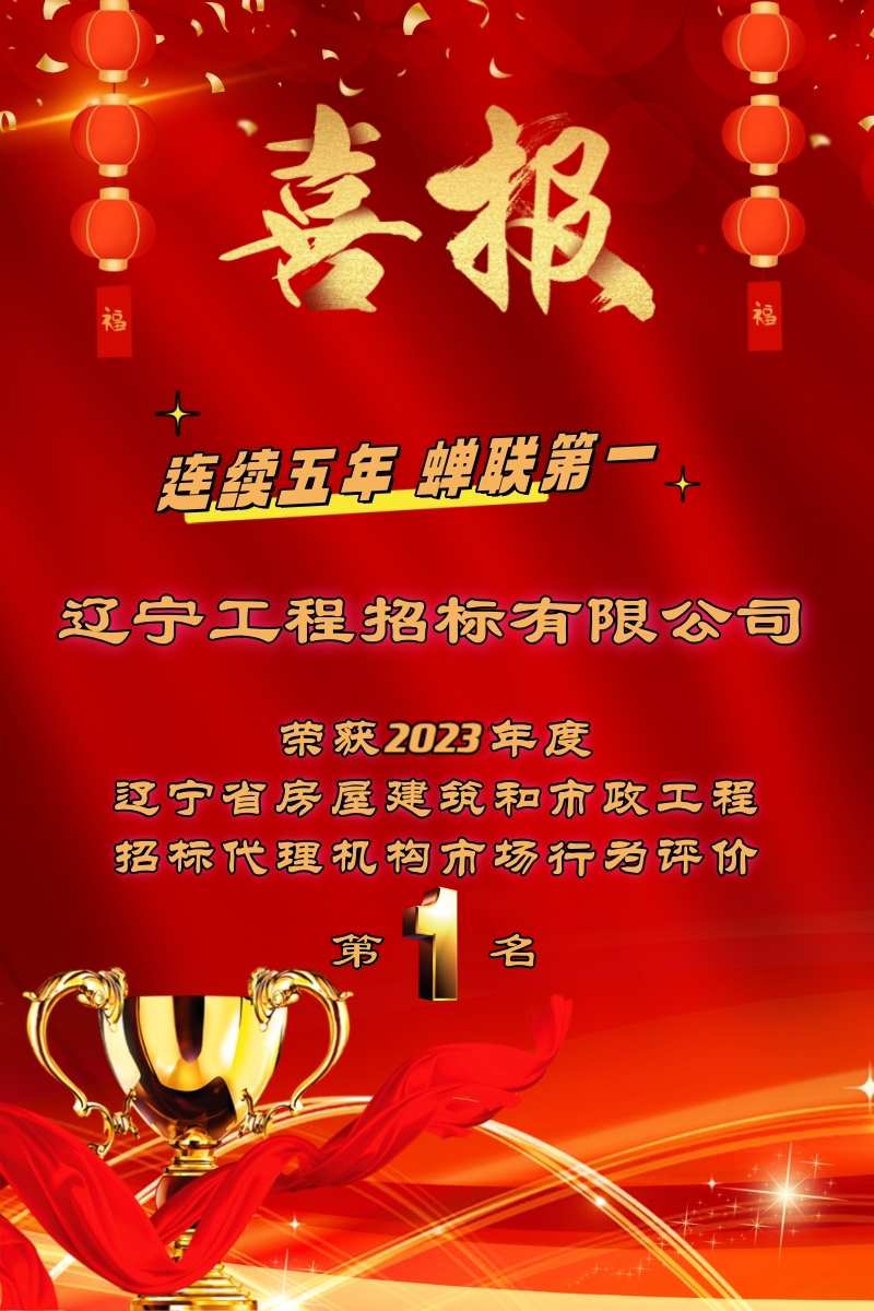 1月25日,在辽宁省住房和城乡建设厅发布的《2023年度全省房屋建筑和市政工程招标代理机构市场行为评价结果公告》中,拼搏在线官方网站以99.44分的优异成绩再次蝉联第一名,是自2019年起,连续第五年问鼎此项殊荣。