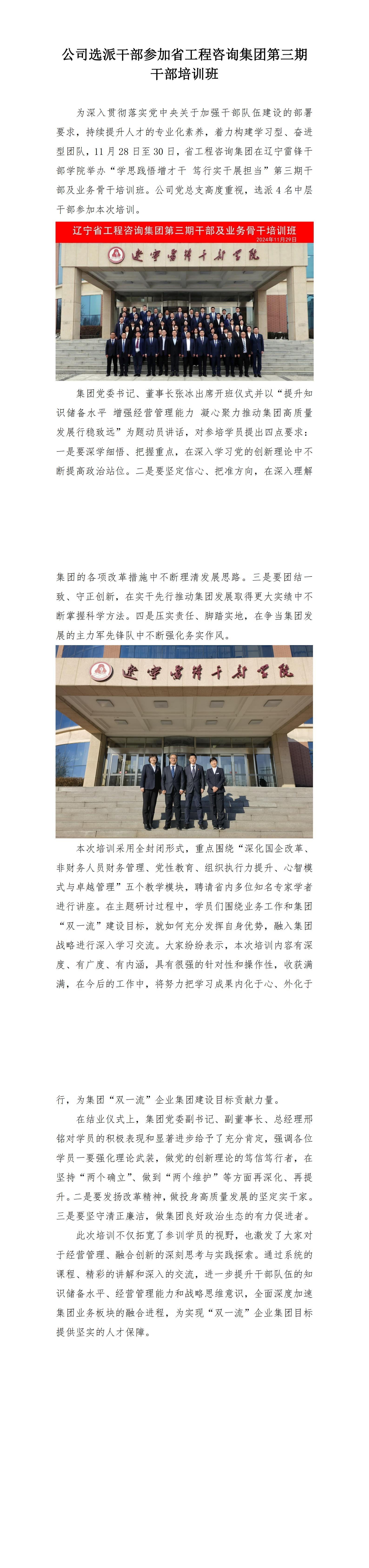 拼搏在线官方网站选派干部参加省工程咨询集团第三期干部培训班
