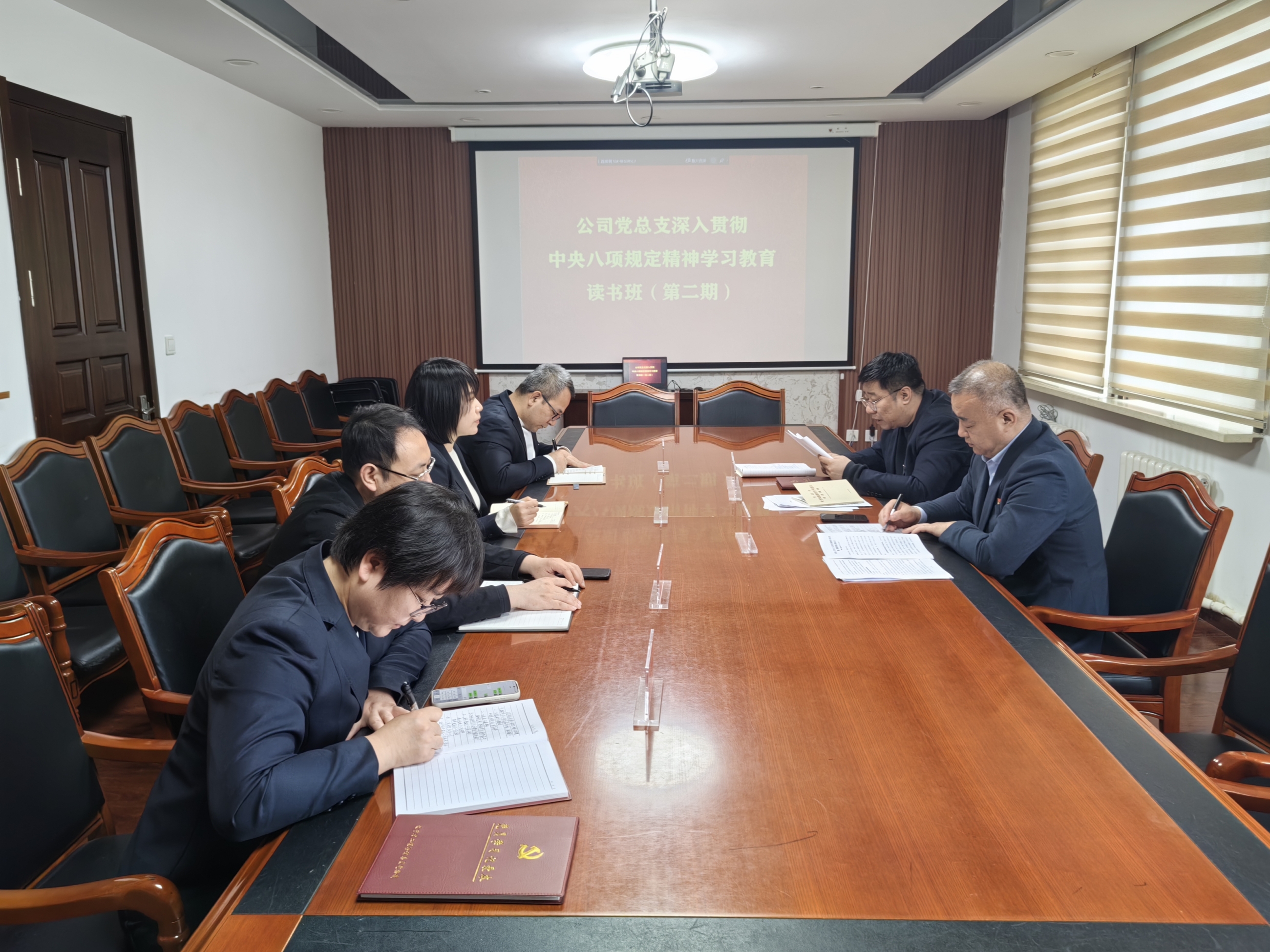 5月9日,拼搏在线官方网站党总支举办深入贯彻中央八项规定精神学习教育第二期读书班,深入学习习近平总书记在贵州、云南考察时的重要讲话精神,重点学习《习近平关于加强党的作风建设论述摘编》,认真学习《违反中央八项规定及其实施细则精神典型案例》等有关内容并开展交流研讨。拼搏在线官方网站副总经理李乾坤主持并领学相关内容,党总支书记李刚做总结讲话,各党支部书记参加学习。